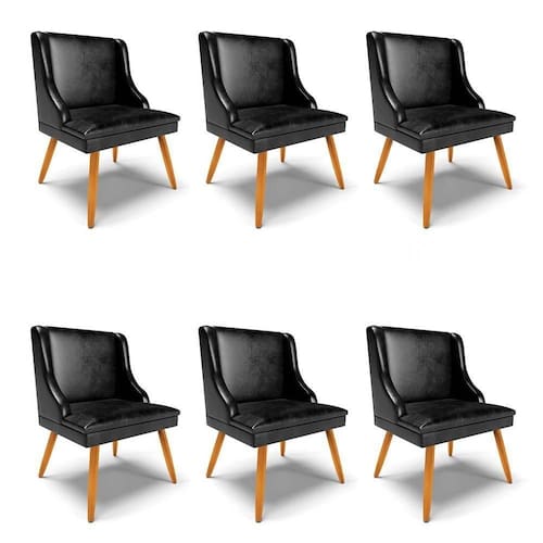 Quer dar um UP na decoração da sua casa? Conheça o Kit 6 Cadeiras Estofadas para Sala de Jantar Pés Palito Lia Sintético Premium Preto, da Ibiza, e encante-se!