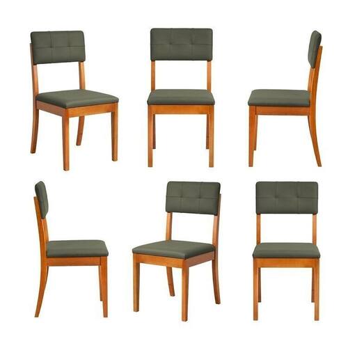 A Cadeira de jantar Tiê, possui estrutura em madeira maciça de reflorestamento, assento e encosto estofados. Suas formas são puras, o encosto recortado proporciona uma leveza ao produto, tornando uma peça ideal para todos os estilos de salas de jantar. Acabamento: Pintura Altura do Conjunto: 92.5 cm Ambiente: null Ambiente Principal: Sala de Jantar Cor: Amêndoa/Verde Folha Informação Complementar: 6x Cadeira Estofada Tiê Cabecasa Madeiramadeira Amêndoa/Verde Folha Largura: 45 cm Altura: 92,5 cm Peso: 7,4 kg Profundidade: 54 cm Necessita Montagem: Sim