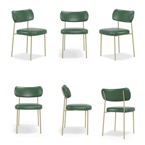 Kit 6 Cadeiras Fixa Stela Champanhe Courino Verde Sala de Jantar - Vallisa Decor