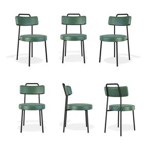 Kit 6 Cadeiras Fixa Ster Courino Verde Recepção - Vallisa Decor - Preto | Verde