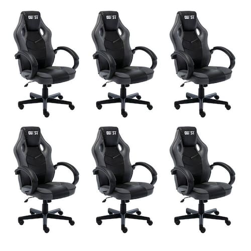 Ela possui o sistema relaxa e seus braços também são revestidos em couro ecológico, o que torna ela ainda mais confortável. Altura do Conjunto: 135 cm Ambiente: null Ambiente Principal: Escritório Cor: Preto/Cinza Cor do Produto: Preto/Cinza Informação Complementar: 6x Cadeira Gamer Giratória Regulável Quest Fratini Preto/Cinza Largura: 54 cm Altura: 135 cm Peso: 15,69 kg Profundidade: 55 cm Necessita Montagem: Sim