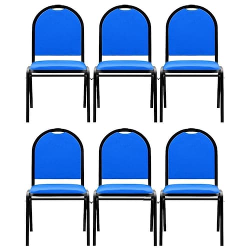 Pensando em durabilidade, beleza e versatilidade, a Mpozenato apresenta o Kit 6 Cadeiras Hoteleiras Auditório Empilhável Sintético M23 Azul, confira os detalhes!