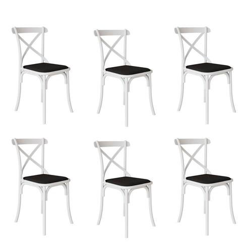 Kit 6 Cadeiras Katrina Assento Corano Preto Aço Branco