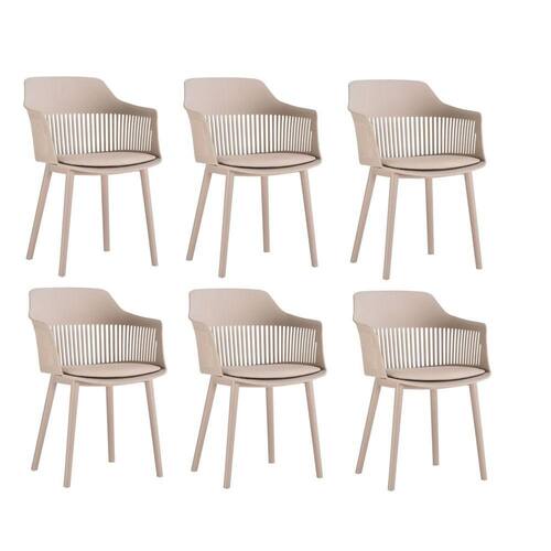 Ideal para ambientar sua sala de jantar ou espaço gourmet, a cadeira Marcela traz todo o charme e sofisticação que você procura! Perfeita para criar um ambiente intimista e aconchegante na sua casa, além de ser super prática e funcional. O conjunto com 6 peças é ideal para quem busca um ótimo custo benefício e praticidade na compra. Conjunto com 06 cadeiras para uso em ambientes internos, com encosto não reclinável, assento injetado em polipropileno (PP), com almofada fixa no assento revestida em PU, sem ajuste de altura, com encosto para as costas. não possui braços, para uso doméstico. Acabamento da Estrutura: Polipropileno Almofada do assento: Fixa Altura do assento até o chão: 46 Ambiente Principal: Cozinha Apoio para Braços Estofado: Não Complexidade da Montagem: Baixa: pode ser montado por uma pessoa sozinha Cor: Nude Cor do Produto: Nude Dobrável: Não Enchimento do Assento: Espuma D-23 Enchimento do Encosto: Escala de Brilho: Fosco Estrutura do Assento: Polipropileno Estrutura do Encosto: Polipropileno Giratória: Não Informações Complementares: Conjunto com 06 cadeiras para uso em ambientes internos, com encosto não reclinável, assento injetado em polipropileno (PP), com almofada fixa no assento revestida em PU, sem ajuste de altura, com encosto para as costas. não possui braços, para uso domést Itens Inclusos: 6 Cadeiras, Kit Ferragens e Manual de Montagem Linha ou Coleção: Manual de Especificação Técnica: Manual de Montagem e Instalação: https://cdn2.madeiramadeira.com.br/atributo/rivatti/639958-manual-marcela-hb22.pdf Material da Base: Polipropileno Necessita Montagem: Sim Origem do Produto: Importado Peso: 6 Possui Apoio para Braços: Sim Possui Apoio Para os Pés: Não Possui Rodízio: Não Recomendações de Uso, Manutenção e Limpeza: Uso interno. Não expor ao sol, chuva, maresia ou umidade, evitando assim manchas e ferrugem. Limpar com pano macio umedecido em solução de água e sabão neutro e secar em seguida. Não utilizar produtos químicos ou abrasivos. Revestimento do Assento: Poliuretano Revestimento do Encosto: Polipropileno Rodízio com Trava: Sistema de Montagem: Parafusos Tipo de Assento: Fixo Tipo de Encosto: Fixo Tipo de Madeira Maciça: