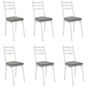 Kit 6 Cadeiras Para Cozinha Tubular D-13 Nara De Aço Branco/grafiato