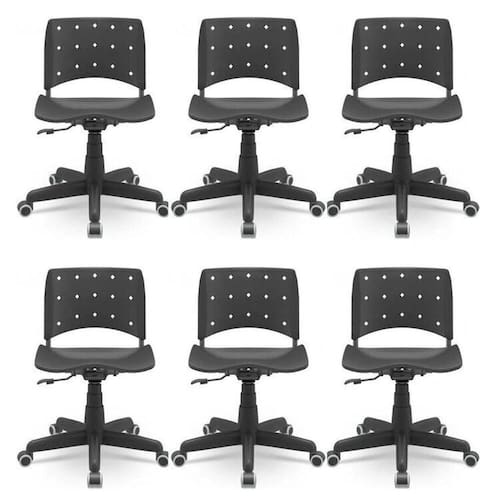 Suporte de peso 110kg Altura do Conjunto: 84.5 cm Ambiente: null Ambiente Principal: Escritório codigo_ean: 7900288055507 Cor: Preto Cor do Produto: Preto Informação Complementar: 6x Cadeira para Escritório Ergonômica Secretária Giratória Ergoplax Mais NR17 Preto Largura: 47,5 cm Altura: 89 cm Peso: 7,22 kg Profundidade: 44,5 cm Necessita Montagem: Não