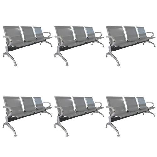 As Longarinas são ideais para aeroportos, hospitais e clínicas. Ela é toda em inox, o que faz que seja mais clean e possa ser utilizada em todos os lugares, além de otimizar o ambiente que são colocadas, por ter três lugares embutidos em apenas uma peça de cadeira, torna o ambiente mais dinâmico e facilitado. Seu assento e encosto em inox torna sua limpeza muito facilitada. Altura do Conjunto: 74 cm Ambiente: null Ambiente Principal: Escritório Cor: Cinza Informação Complementar: 6x Cadeira Para Escritório Longarina 3 Lugares Dubai Cinza/Metálico Largura: 171 cm Altura: 74 cm Peso: 14,31 kg Profundidade: 60 cm Necessita Montagem: Sim