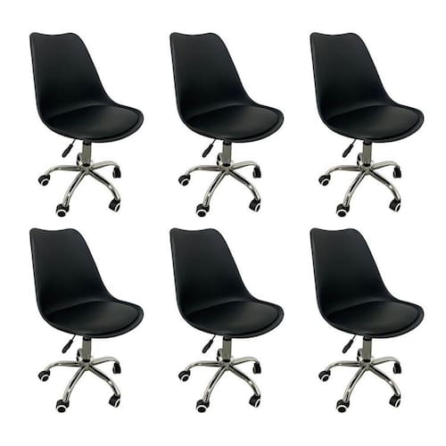 A cadeira Chicago é perfeita para completar seu ambiente, possui estrutura em polipropileno com estofado PU, minimalista e delicada, ela irá compor quartos, consultórios ou onde preferir! Garantindo conforto e praticidade. Altura do Conjunto: 92 cm Ambiente: Escritório Ambiente Principal: Escritório Cor: Preto Cor do Produto: Preto Informação Complementar: 6x Cadeira para Escritório Secretária Decorativa Eames Chicago Preto Largura: 48 cm Altura: 92 cm Peso: 7,6 kg Profundidade: 55 cm Necessita Montagem: Sim