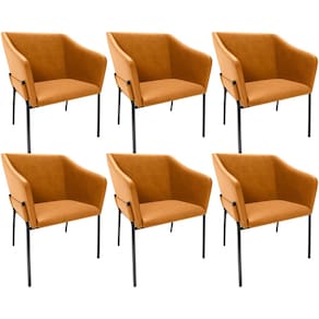 Que tal inovar na sala de jantar e apostar em um modelo de cadeira de jantar estilo poltrona?! Isso mesmo, com o Kit 06 Cadeiras Para Sala de Jantar Estar Living Olívia L02 Couríssimo Whisky, da Lyam Decor, você pode.