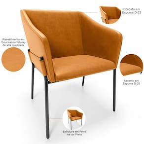 A cadeira Olívia combina o design industrial da estrutura de ferro, com a delicadeza do revestimento e conforto do assento e encosto estofados. Além disso, a versatilidade também é outra característica que vale a pena ser destacada, já que você poderá aproveitá-la como cadeira para sala de jantar, área gourmet ou como poltrona decorativa para compor espaços como sala de estar, living, recepção, escritório e até mesmo no quarto. Não deixe para depois, aproveite hoje mesmo e transforme a sua casa com o conjunto de cadeiras Olívia. Você vai se surpreender!