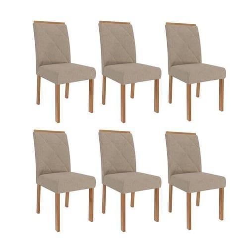 Kit 6 Cadeiras para Sala de Jantar Estofadas Fernanda Bege