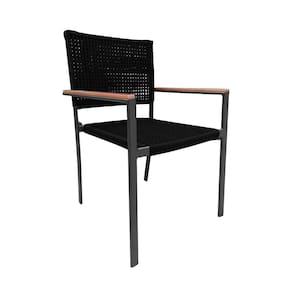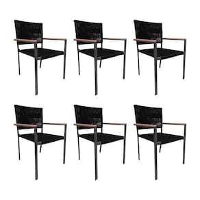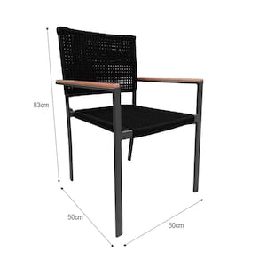 Kit 6 Cadeiras Piracicaba Corda Náutica Braço com Detalhe em Madeira Base Alumínio Preto/preto - Preto