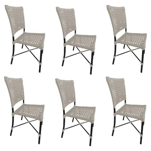 Kit 6 Cadeiras Roma Corda Náutica Base em Alumínio Preto/areia - Bege