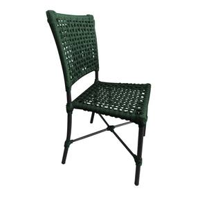 Kit 6 Cadeiras Roma Corda Náutica Base em Alumínio Preto/verde Musgo