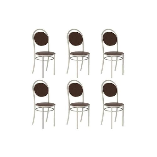 Cadeira Sala de Jantar 190 Aço Kit 6 Uni Prata/Courano Cacau - Carraro