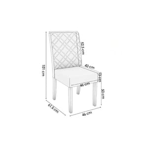 Dimensões(Cm): Comprimento(Profundidade): 61,5cm x Largura: 46cm x Altura: 101cm Material de Estrutura - Madeira/MDF Tipo de Pintura - UV Tipo de Acabamento da Pintura - Fosco Forração do Revestimento - Tecido Tipo do Assento - Estofado Tipo de Encosto - Estofado Tipo dos Pés - Pés de Madeira Montagem do Produto - Desmontável Certificação de Qualidade - Qualidade Aprovada Garantia - 3 meses