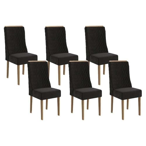 Kit 6 Cadeiras Sala Jantar 2cad158ng 6 Un Nogueira/suede Preto A038 - Kappesberg