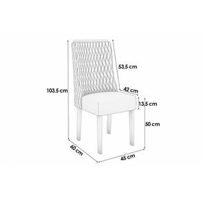 Dimensões(Cm): Comnto(Profundidade): 64cm x Largura: 46cm x Altura: 103cm Material de Estrutura - Madeira/MDF Tipo de Pintura - UV Tipo de Acabamento da Pintura - Fosco Forração do Revestimento - Tecido Tipo do Assento - Estofado Tipo de Encosto - Estofado Tipo dos Pés - Pés de Madeira Montagem do Produto - Desmontável Certificação de Qualidade - Qualidade Aprovada Garantia - 3 meses