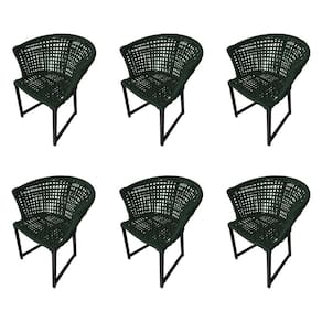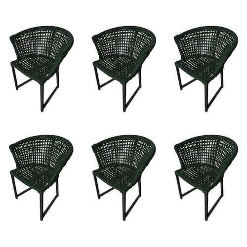 Kit 6 Cadeiras Salinas Corda Náutica Base em Alumínio Preto/verde Musgo