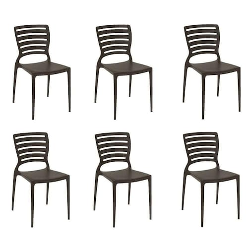 A Cadeira Sofia Marrom Tramontina é feita de polipropileno e fibra de vidro.
