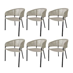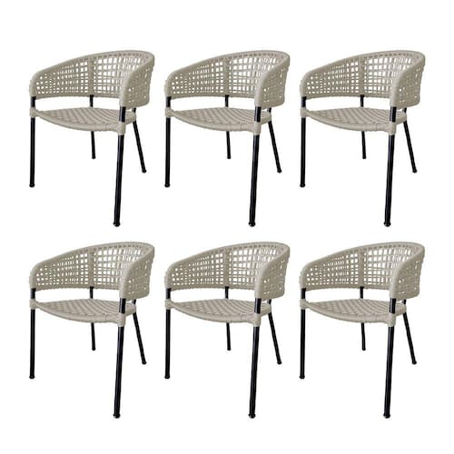 Kit 6 Cadeiras Sol Corda Náutica Base em Alumínio Preto/areia - Bege