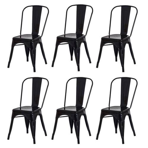 Kit 6 Cadeiras Tolix Iron Design Preta Brilhante Aço Industrial Sala Cozinha Jantar Bar