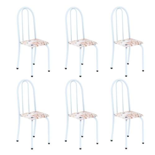 Kit 6 Cadeiras Tubular 96x36x41 Cm Iris B Botanic Bege / Branco