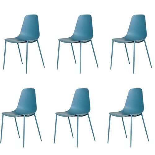 Kit 6 Cadeiras Miami Abi Fratini Polipropileno Cor Azul Sonho Distante Base Em Aço Com Pintura Epóx Azul