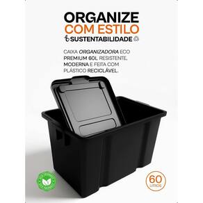 A central de organização definitiva: Domine grandes espaços com o combo de maior volume e economia do mercado Precisa organizar um , um closet inteiro ou está se preparando para uma mudança O Kit com 6 Caixas Eco Premium 60L oferece impressionantes 360 litros de capacidade, garantindo padronização visual e a máxima eficiência logística para o seu dia a dia. O Kit 6 Caixas Organizadoras Eco Premium 60L é a escolha estratégica para quem lida com grandes volumes de itens. Fabricadas em polímero reciclado de alta densidade, estas caixas foram projetadas para o uso intenso. A cor preta confere um aspecto e limpo, ideal para manter a discrição visual mesmo quando empilhadas em grandes quantidades. Este kit é perfeito para sistemas de e logística doméstica. Com as 24 rodinhas inclusas 4 por caixa , você cria uma unidade de armazenamento móvel que facilita a limpeza e o remanejamento de carga sem qualquer esforço. O sistema de travas laterais em todas as unidades assegura que seus objetos fiquem hermeticamente protegidos contra poeira e umidade, permitindo um armazenamento de longo prazo com total tranquilidade. Capacidade Massiva de 360L: O combo ideal para organizar depósitos, garagens, sótãos ou grandes inventários de produtos. Estabilidade em Altura: O design stackable permite o empilhamento vertical de várias unidades com encaixe firme, economizando área de piso. Logística Inteligente: Com 4 rodinhas por unidade, você movimenta todo o seu de forma ágil e segura, preservando sua coluna. Proteção Sistêmica: Todas as 6 caixas possuem travas de segurança de alta pressão, mantendo o conteúdo isolado de agentes externos. Durabilidade Industrial: Plástico reciclável reforçado com vincos estruturais que suportam o peso do empilhamento sem deformar. Padronização : Estética uniforme que transforma a aparência de qualquer ambiente, eliminando a poluição visual da bagunça. Garanta o nosso Kit Premium agora Aguardamos o seu pedido Marca: Não Informado