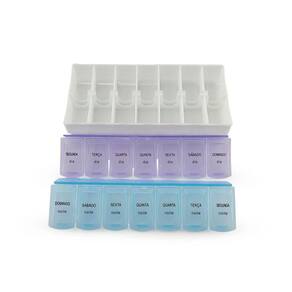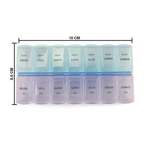 - Marca: Show House - Material: Plástico - Porta comprimido semanal dia e noite - Comporta aproximadamente 15 comprimidos, dependendo do tamanho - Escrita em português - Identificação Tátil - Tampas Removíveis