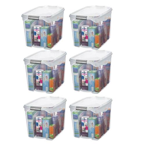 Kit 6 Caixas Organizadora Plástica Transparente 36L SANREMO Kit 6 Caixas Organizadoras Plástico Transparente: permite que você visualize o conteúdo do que está guardado. Possui travas que garantem um fechamento seguro da tampa e laterais com formato anatômico que possibilitam um manuseio mais prático no seu dia a dia.