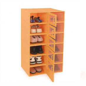 Kit 6 Caixas Organizadoras Empilhavel Abertura Frontal Para Tenis Sapatos E Salto Uso Em Closet Quarto Luxo Laranja