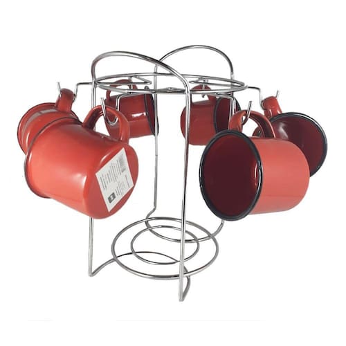 Este Kit contém: 6 CANECAS ESMALTADA VERMELHA 150ml + SUPORTE P/ 6 XÍCARAS