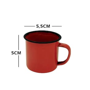 JOGO 6 CANECAS ESMALTADA VERMELHA 150ml C/ SUPORTE XÍCARA