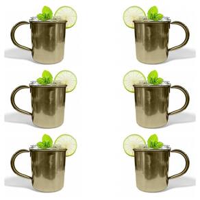 Kit 6 Canecas Moscow Mule Lisa Drink Aço Inox Premium 420Ml
