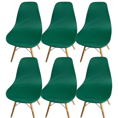 Kit 6 Capa de Cadeira Charles Eames Eiffel Pé Palito Malha Lisa Cor: Verde As capas de cadeira chegaram pra ficar, pois além de proteger, mantendo-as limpas e novas por mais tempo, te permitem mudar a decoração sempre que quiser, graças à grande variedade de cores e estampas disponíveis. A malha gel é resistente, leve e maleável, fácil de lavar, seca rápido e é muito fácil de vestir.