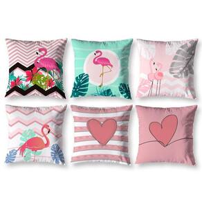 Kit 6 Capas De Almofada 40Cm X 40Cm Estampadas Flamingo