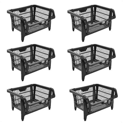 Kit 6 cestos plásticos expositor preto 44,5x20,5x35cm Kit 6 cestos plásticos expositor preto 44,5x20,5x35cm