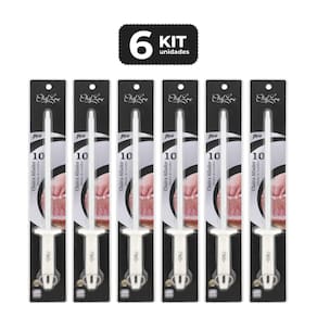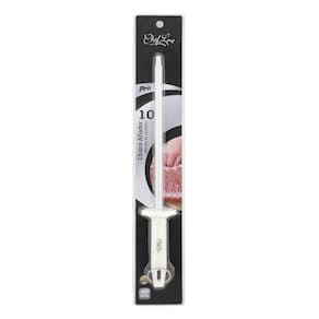 A chaira de 10 polegadas é produzida em aço carbono de alta qualidade, garantindo resistência e durabilidade. Possui cabo ergonômico em polipropileno, com acabamento em resina termoplástica injetada diretamente sobre o aço inox, proporcionando firmeza, higiene e maior vida útil. Conta ainda com furo passante que facilita o armazenamento, podendo ser pendurada com praticidade.
