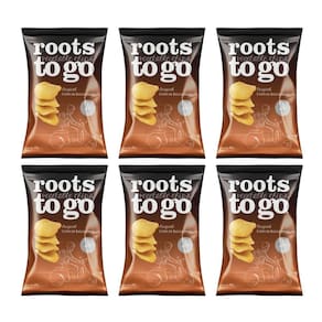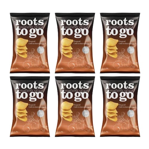 Raízes direto da fazenda para você - os chips de batata-doce roots to go oferecem crocância irresistível e o sabor natural da batata-doce em um snack leve e delicioso.