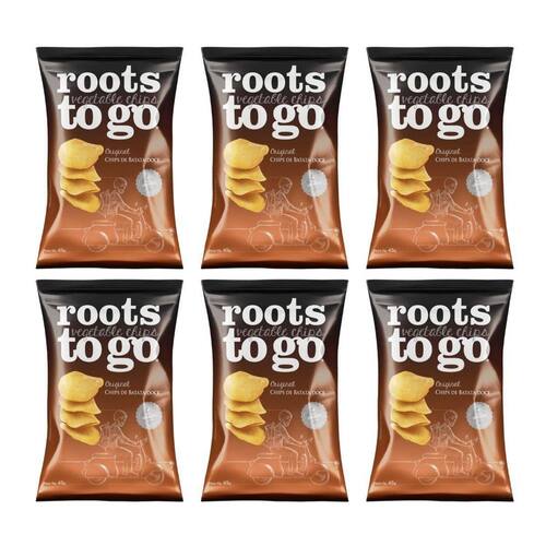 Raízes direto da fazenda para você - os chips de batata-doce roots to go oferecem crocância irresistível e o sabor natural da batata-doce em um snack leve e delicioso.