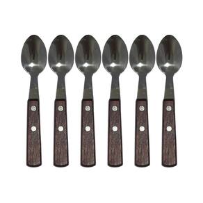 - 01 Kit com 6 Colheres Chá Mesa Linha Legna Aço Inox Madeira.