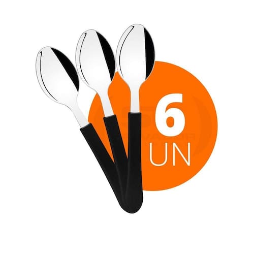 6 colheres de sobremesa leme com lamina em aço inox cabo preto cspbag - tramontina 23186400