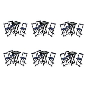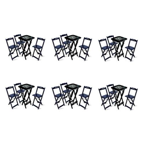 Kit 6 Conjuntos De Mesa Bistrô Dobrável Jack Daniel's Com 3 Banquetas De Madeira Preta - Cor: Preto