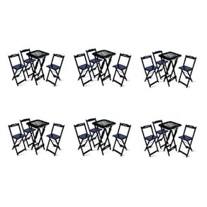 Kit 6 Conjuntos De Mesa Bistrô Dobrável Jack Daniel S Com 3 Banquetas De Madeira Preta