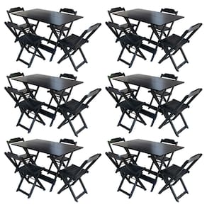 Kit 6 Conjuntos De Mesa Com 4 Cadeiras De Madeira Dobravel 120x70 Preto - Preto