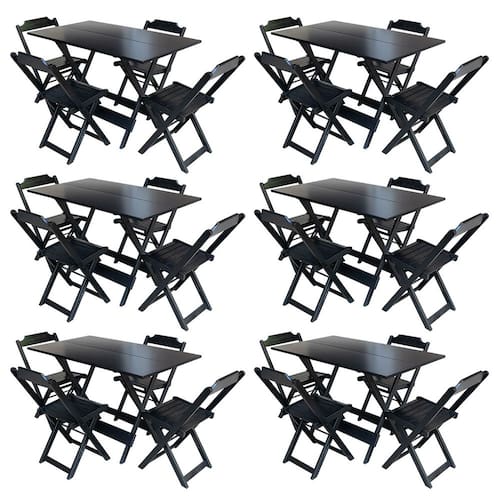 Kit 6 Conjuntos De Mesa Com 4 Cadeiras De Madeira Dobravel 120x70 Preto