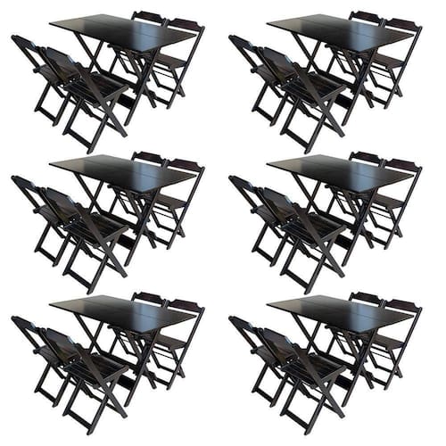 Kit 6 Conjuntos De Mesa Com 4 Cadeiras De Madeira Dobravel 120x70 Tabaco - Cor: Marrom