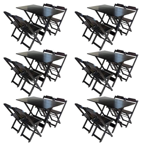 Kit 6 Conjuntos De Mesa Com 4 Cadeiras De Madeira Dobravel 120x70 Tabaco é ideal para bares, restaurantes, estabelecimentos, áreas de lazer e tambem para sua casa. Feito em madeira maciça, tornando resistentes e duráveis. Seu design permite que seja encaixado em qualquer ambiente, trazendo um toque a mais para seu estabelecimento. Além de sua durabilidade, o que lhe trará conforto para servir seus clientes. Por ser dobrável torna-se mais fácil guardar, manusear e limpar o produto. Atenção: EVITE USAR PRODUTOS ABRASIVOS E QUíMICOS PARA LIMPEZA DO PRODUTO, aconselha-se o uso de pano umedecido para melhor conservação; mantenha o produto fora de chuva e sol constantes MESA Cor: Tabaco Modelo: Dobravel Dimensões: Altura 75 | Largura 70 | Profundidade 120 CADEIRA Cor: Tabaco Modelo: Dobravel Dimensões: Altura 80 | Largura 45 | Profundidade 42