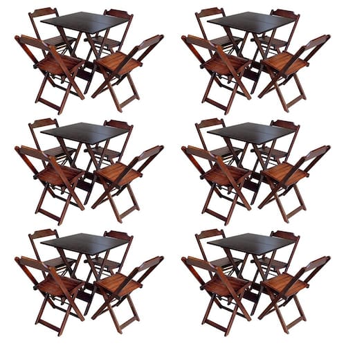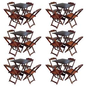 Kit 6 Conjuntos De Mesa Com 4 Cadeiras De Madeira Dobravel 70x70 Imbuia